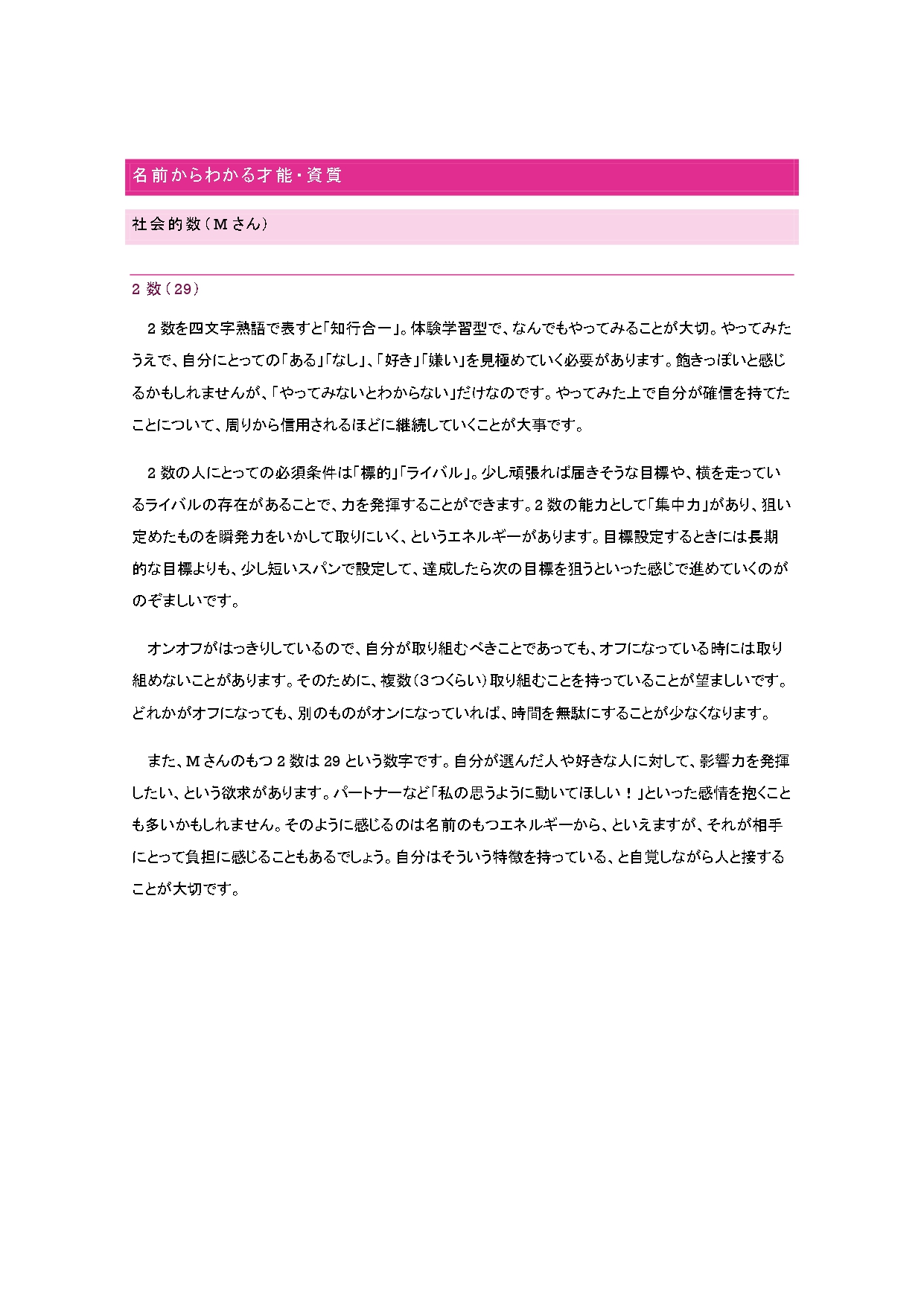 誕生日からわかる役割・使命、名前からわかる才能・資質、元数盤を使って導き出す、その人だけの人生の設計図を読み解いてお伝えします。人生の設計図からは、人生において軸とすべきこと、生涯にわたって意識すべきこと、うまくいく行動パターン、人生の流れ、毎月のバイオリズムなどがわかります。