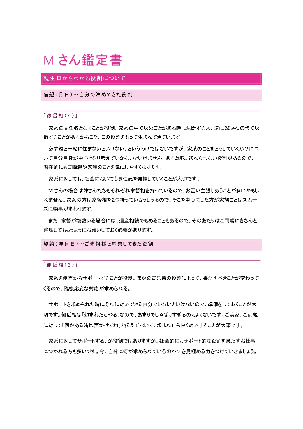 鑑定を受けたことで、自分の役割がわかり、今までふんわりイメージしていた物事に確信が持て、行動するキッカケになりました。